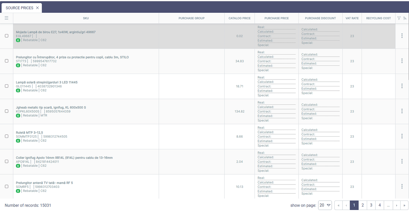 In the "Source Prices" tab, you will find all the necessary information regarding prices per index. You can filter and sort each column. When sorting, numbers appear on the sorted columns, indicating the sorting order of the columns.