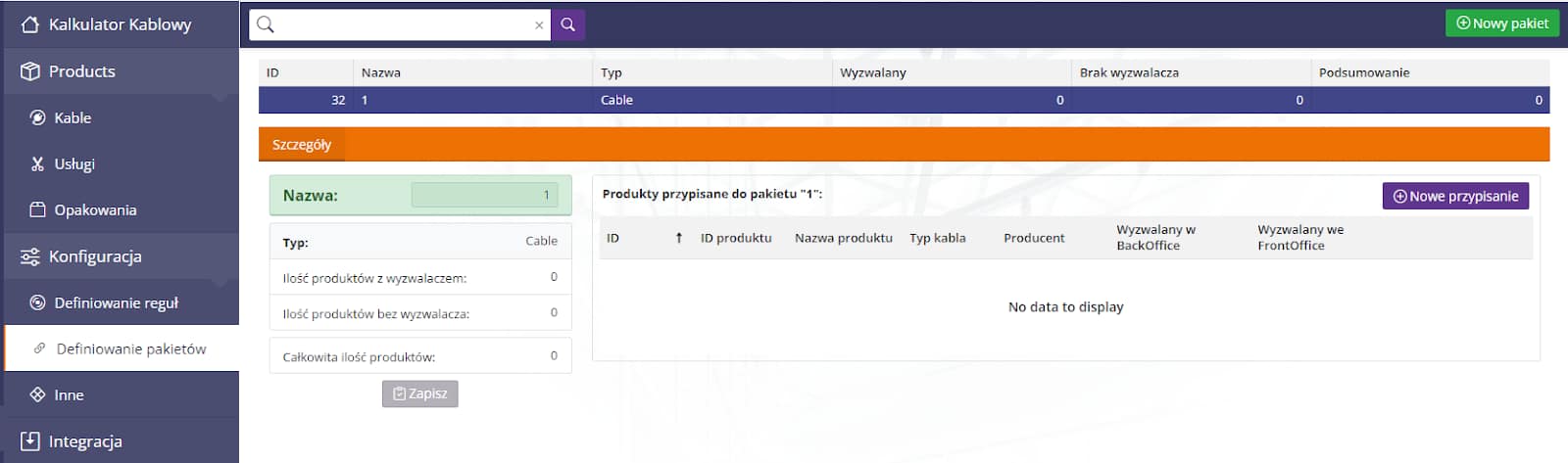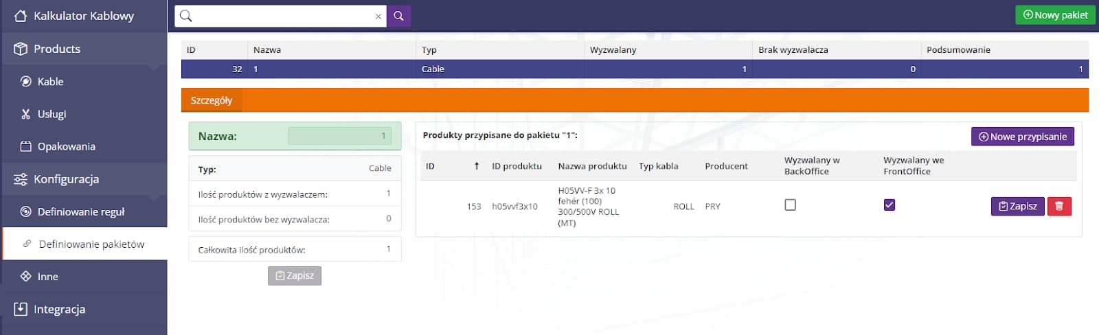 The "Configuration/Bundle Assignment" menu allows managing and configuring packages within the system. Here you can find a list of all available packages defined in the system.
