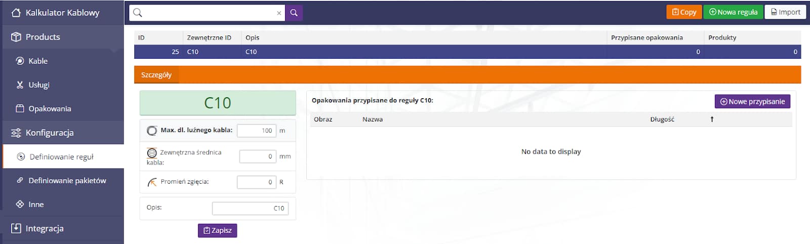 The "Configuration/Definition Rules" menu allows managing and configuring rules in the system. Here, you can find a list of all available rules defined in the system. These rules are important for business processes and data management.