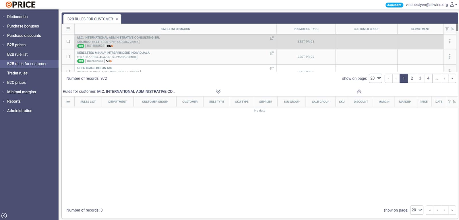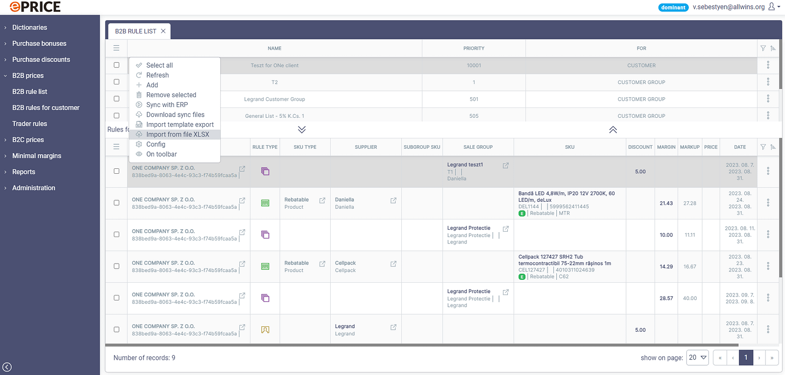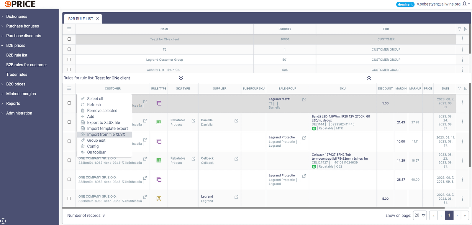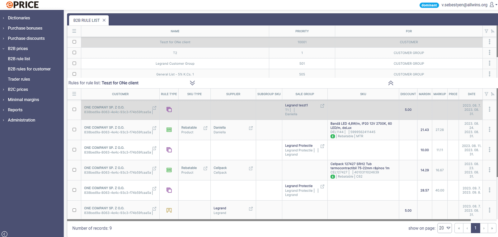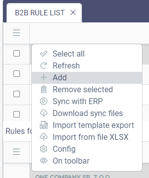 - On the left-hand side menu, expand the "B2B Prices" tab, and then go to the "B2B Rule Lists" tab.