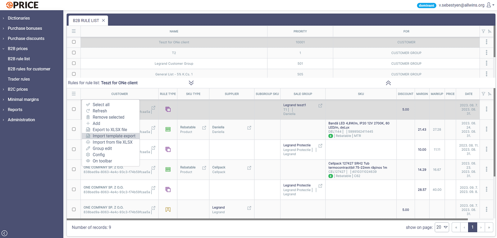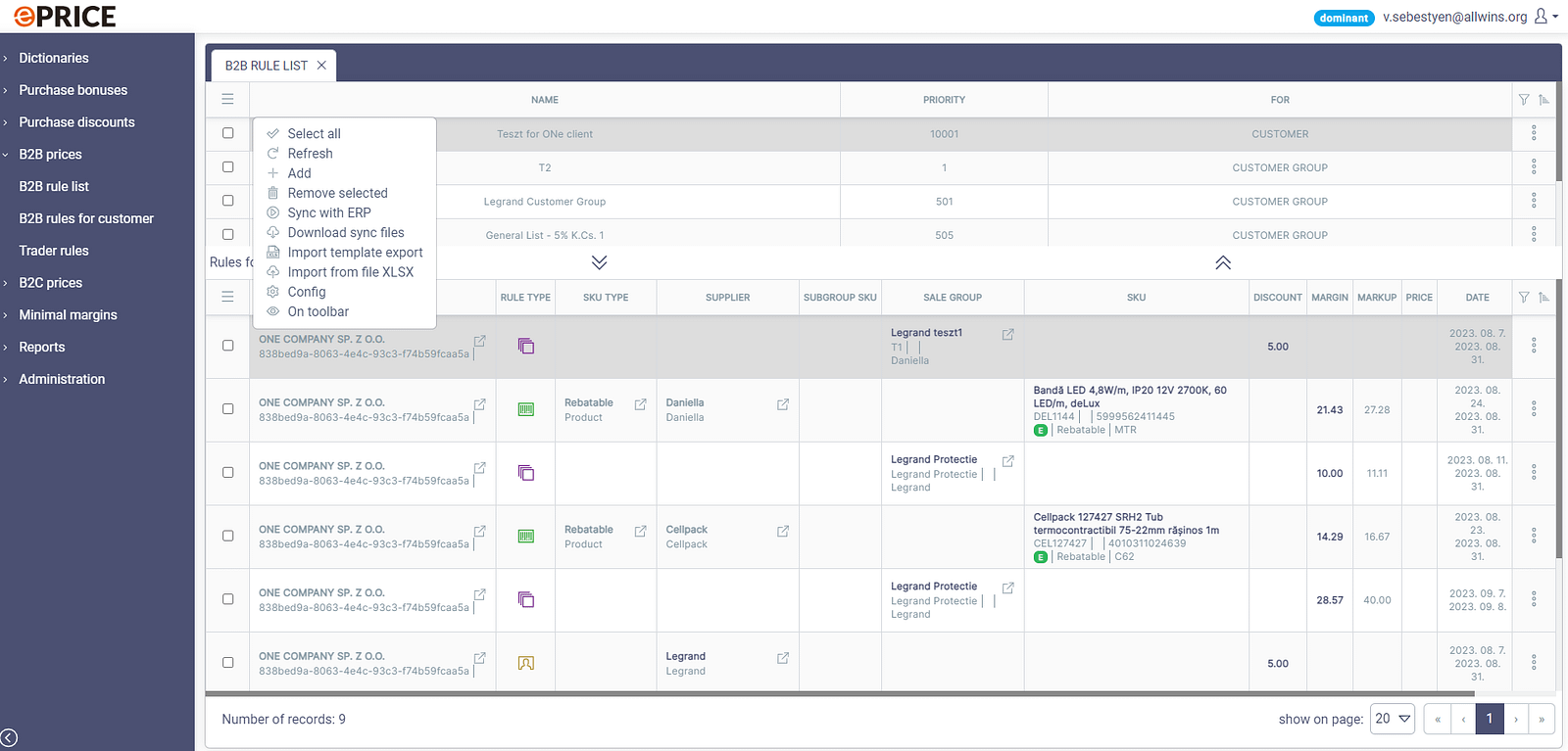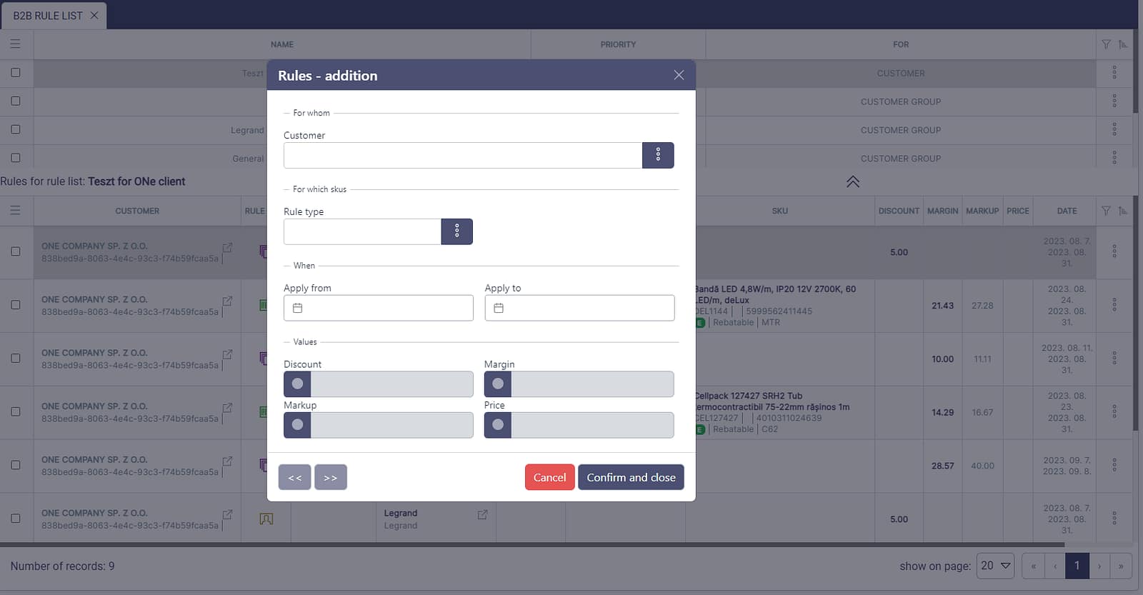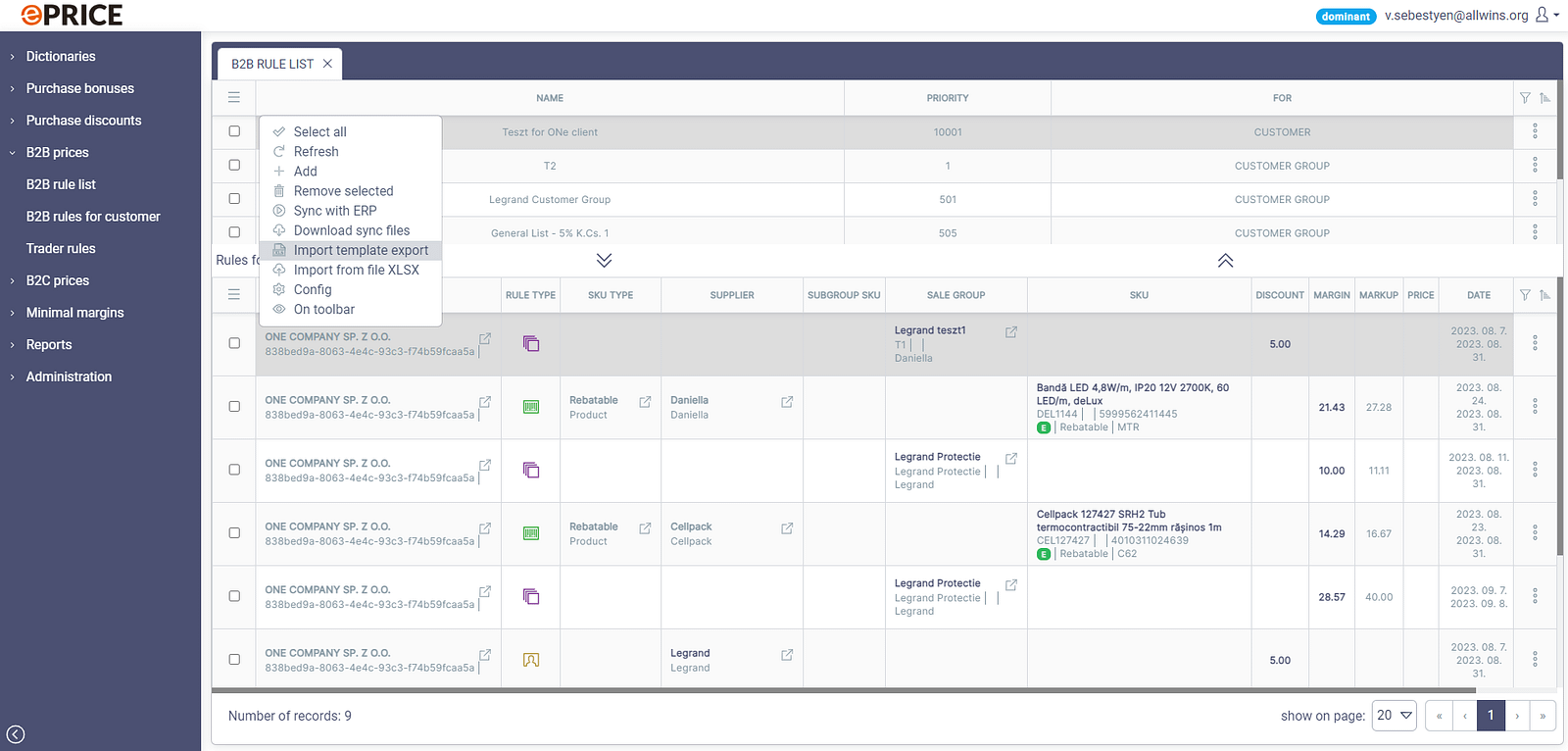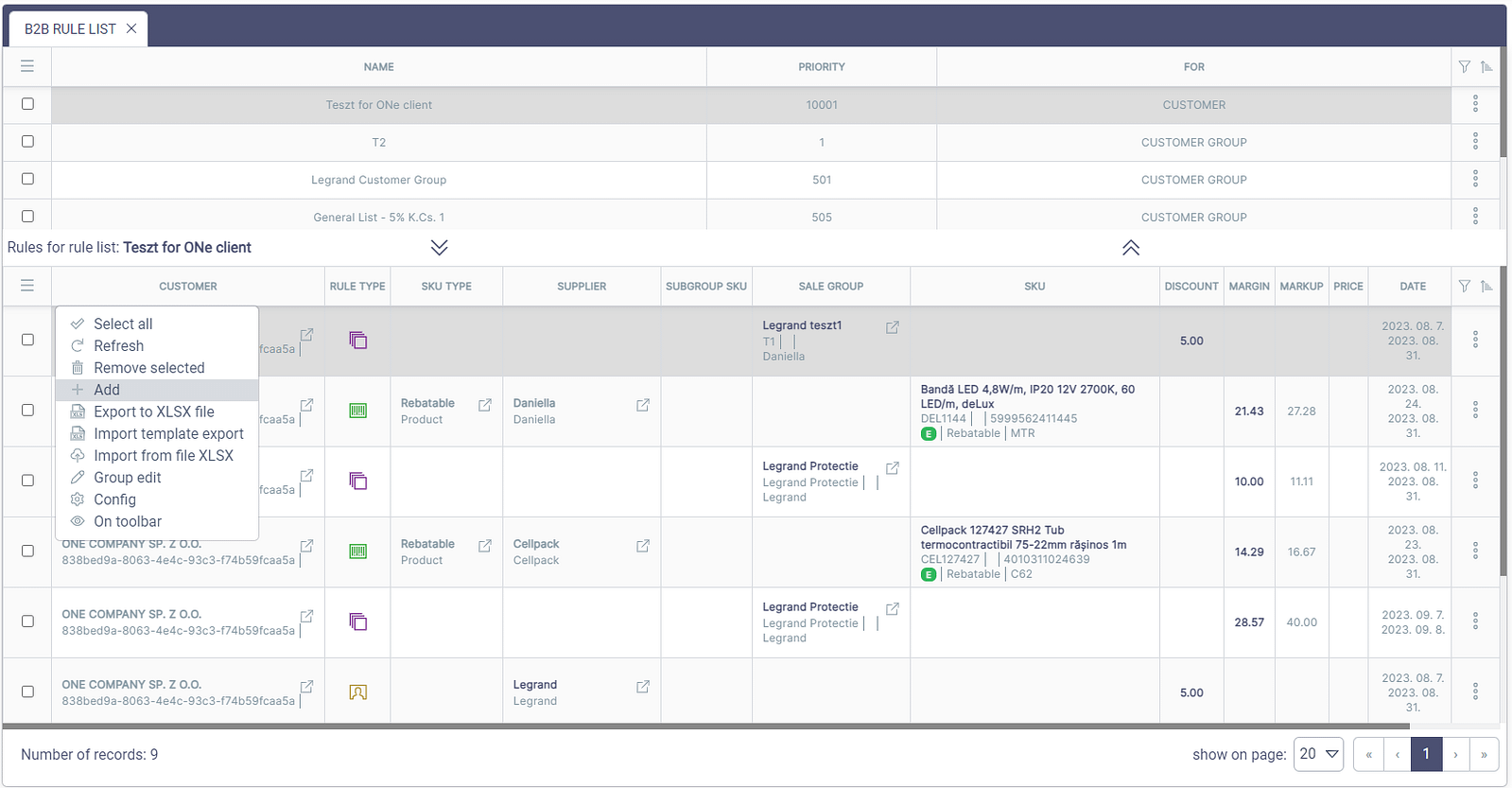 - On the left-hand side menu, expand the "B2B Prices" tab, and then go to the "B2B Rule Lists" tab.