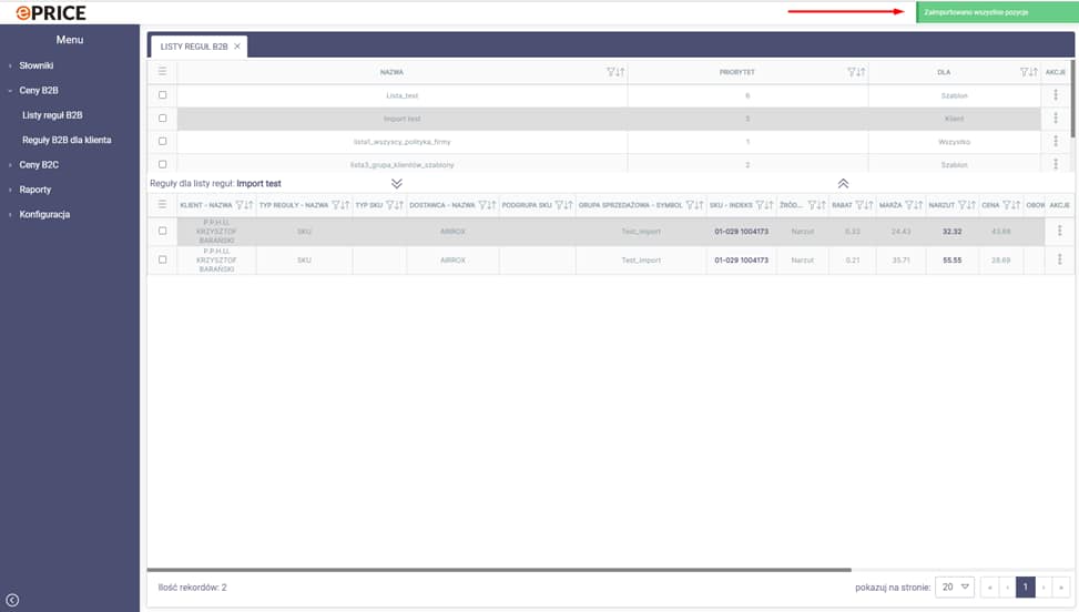 - If everything is imported correctly, a notification about the successful import of the file will be displayed in the upper right corner.