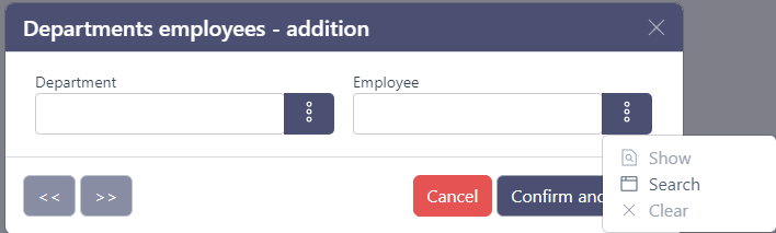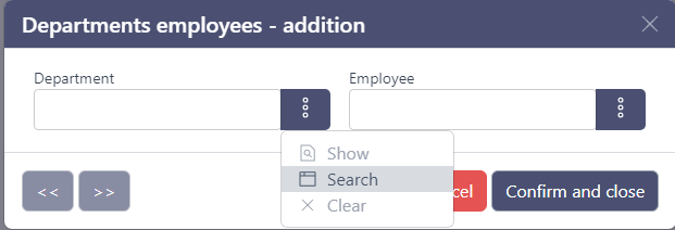 - First, select the Department to whom you want to assign a representative. To find the appropriate department, enter their name or search from the dictionary. To search for a customer from the dictionary, click on the action button (three dots) and choose the "Search" option.