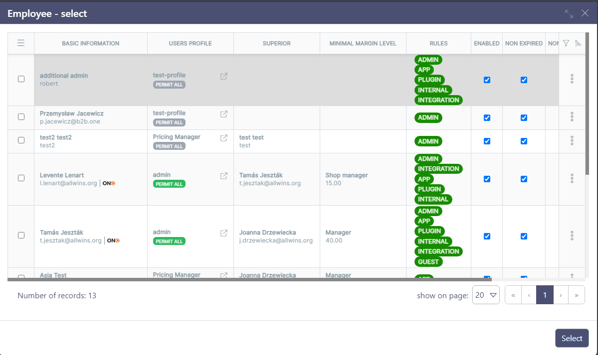 - On the new screen that appears, you can select the employee, or if you want to select several employees at the same time, you have to click on the check box.