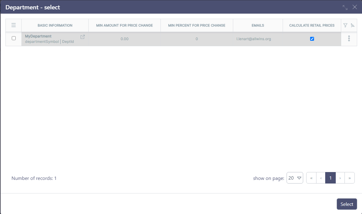 - On the new screen that appears, you can select the department, or if you want to select several departments at the same time, you have to click on the check box.