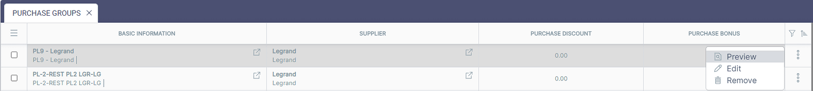 The Purchase Groups section provides a comprehensive view of all the synchronized purchase groups linked to your products. These groups play a crucial role in facilitating a more streamlined and organized approach to purchasing and pricing management within the software. Key Features and Functions:
